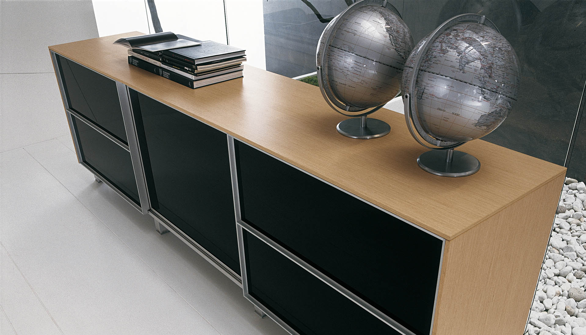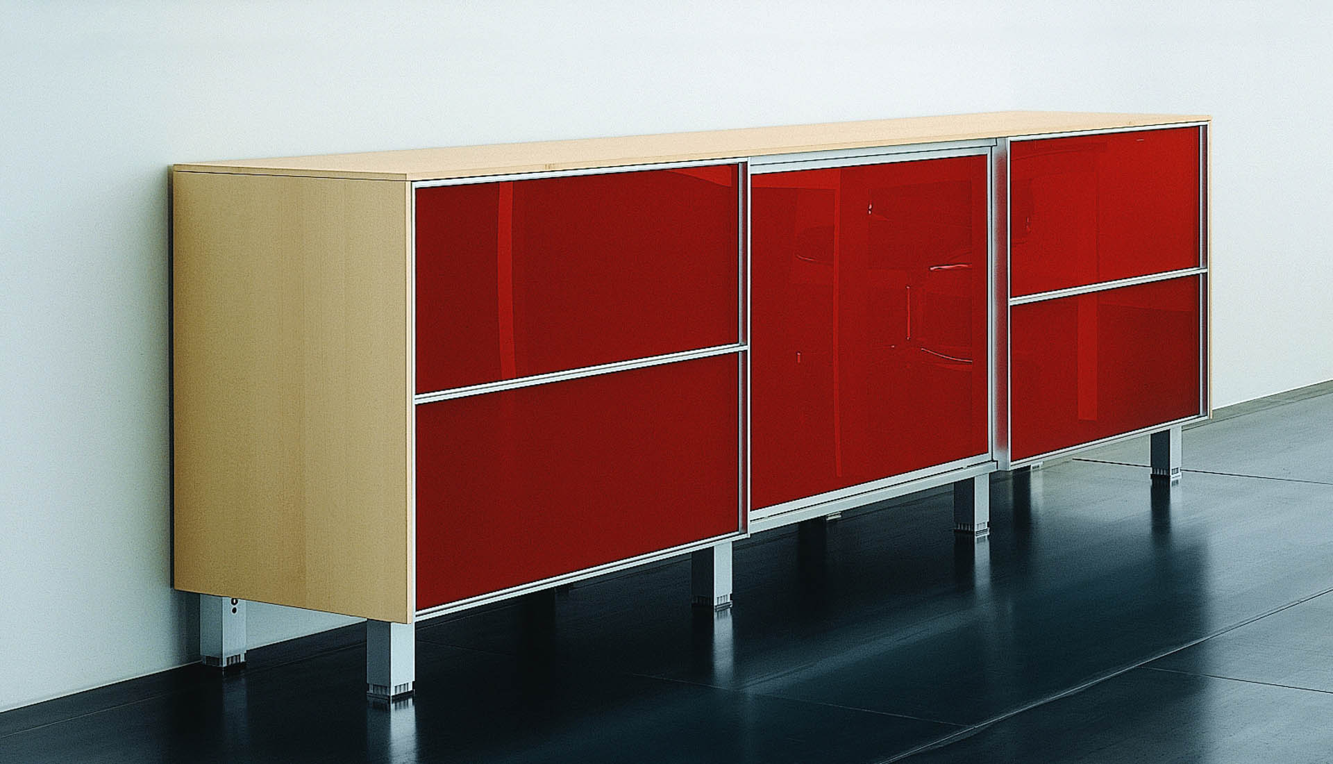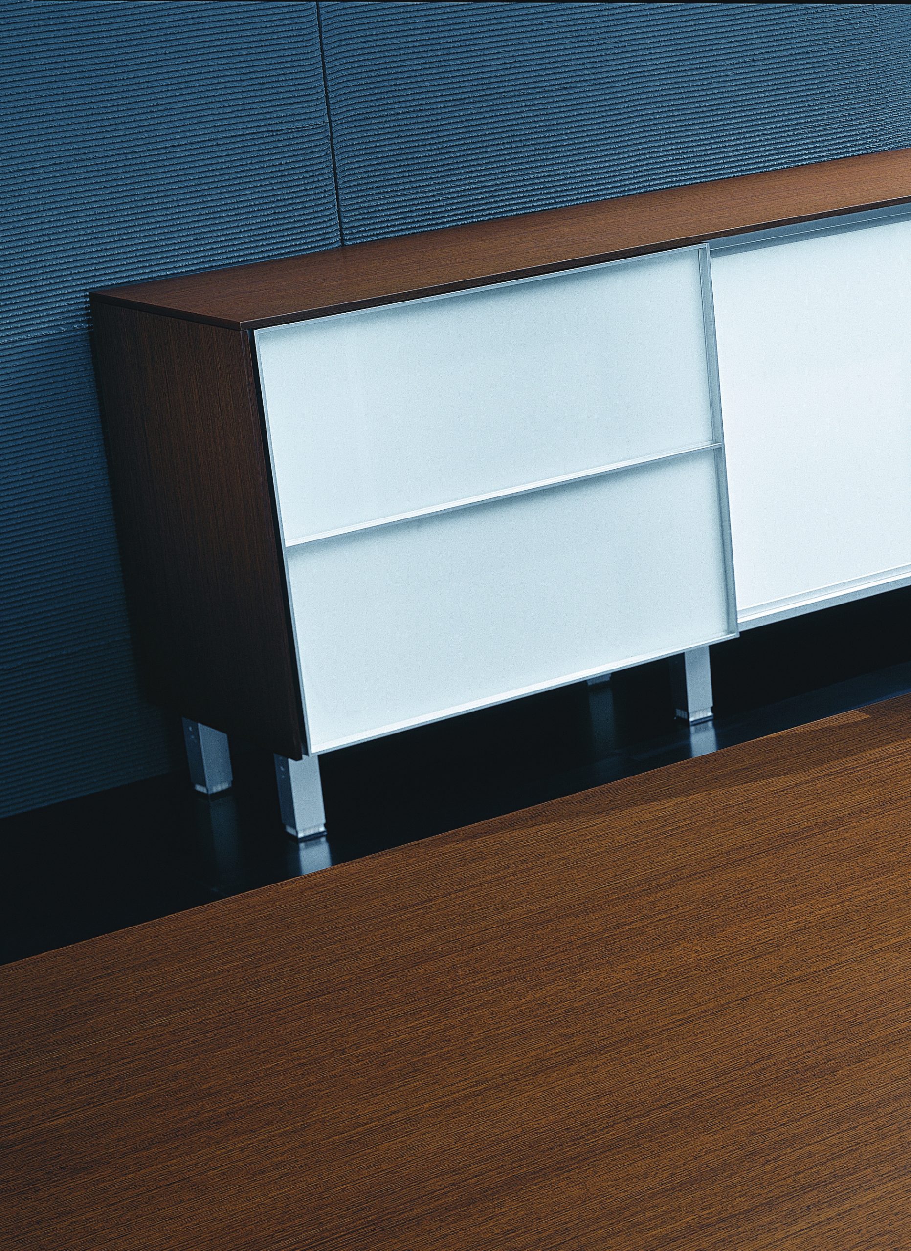 Crédence à porte coulissante avec une structure de 20 mm d’épaisseur.