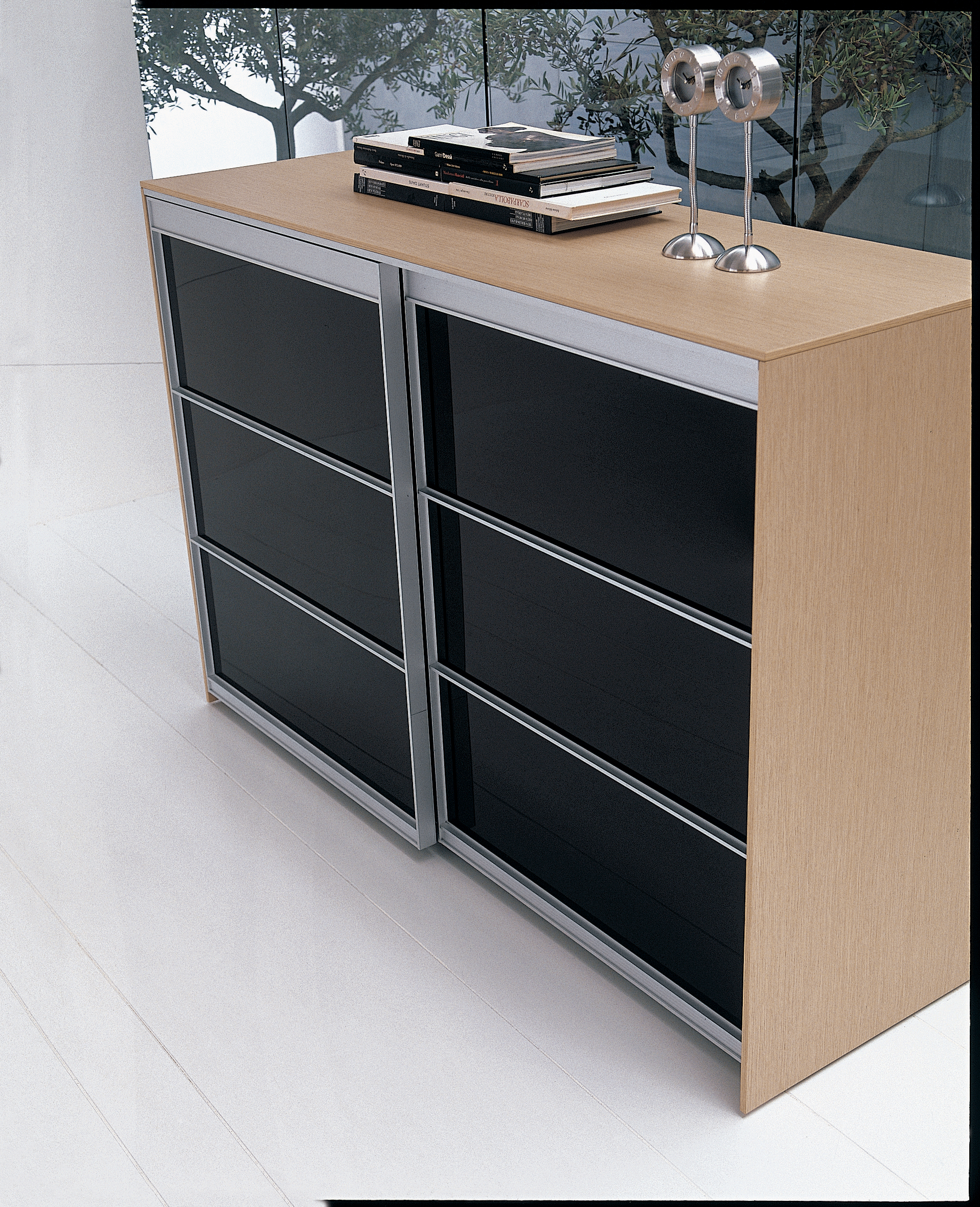 Armoire à portes coulissantes avec un cadre en aluminium et une structure de 2 cm d’épaisseur.
