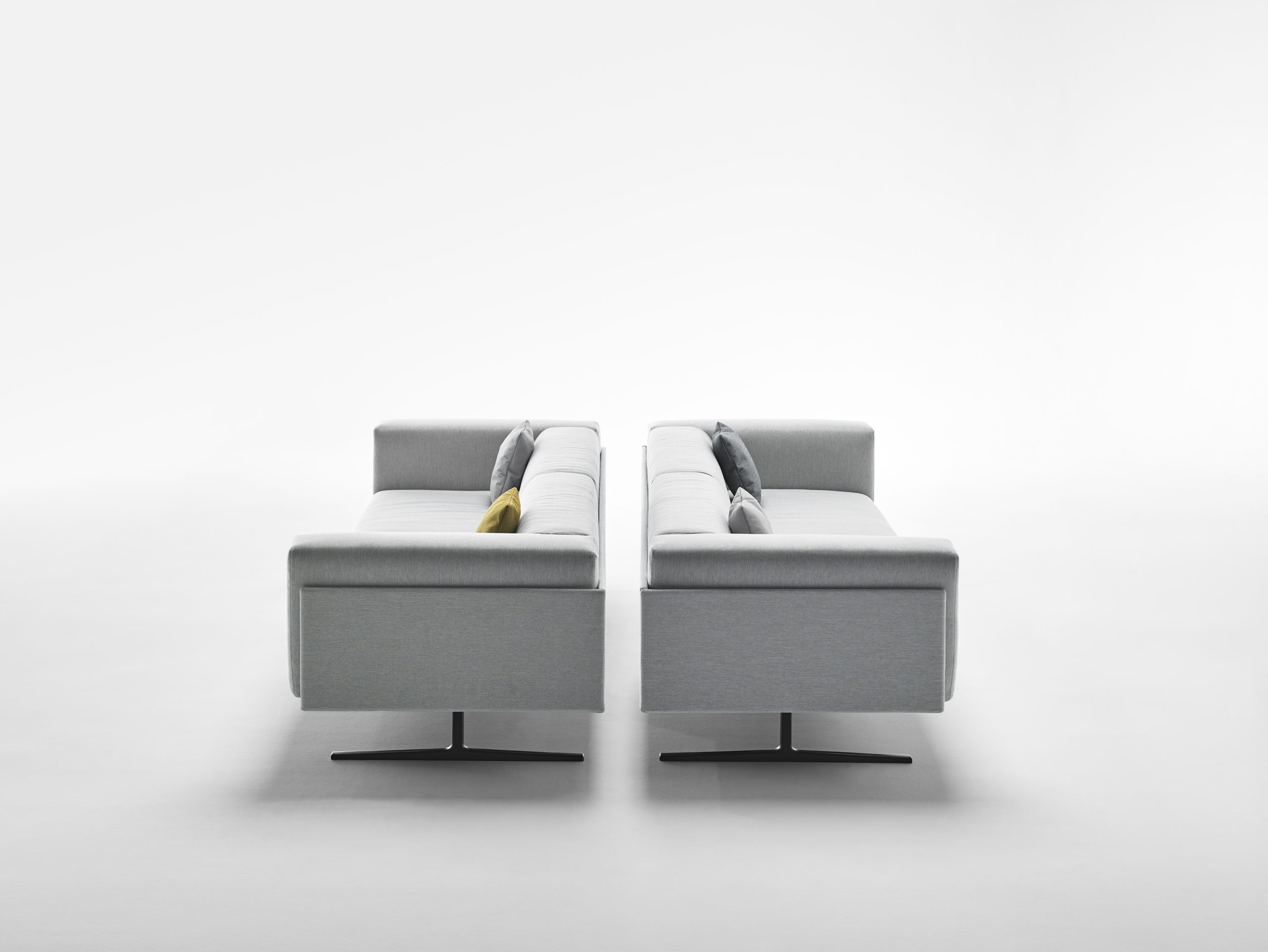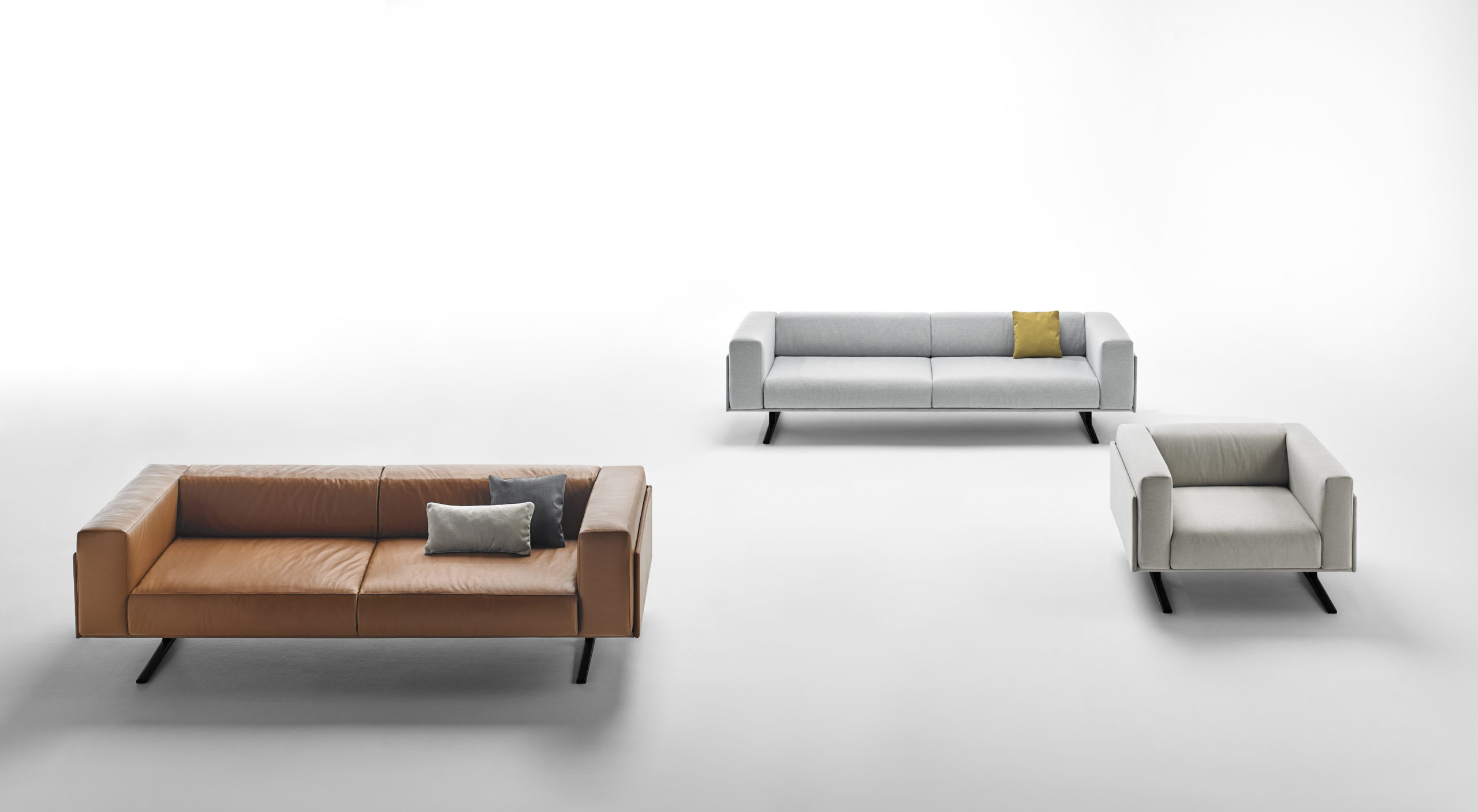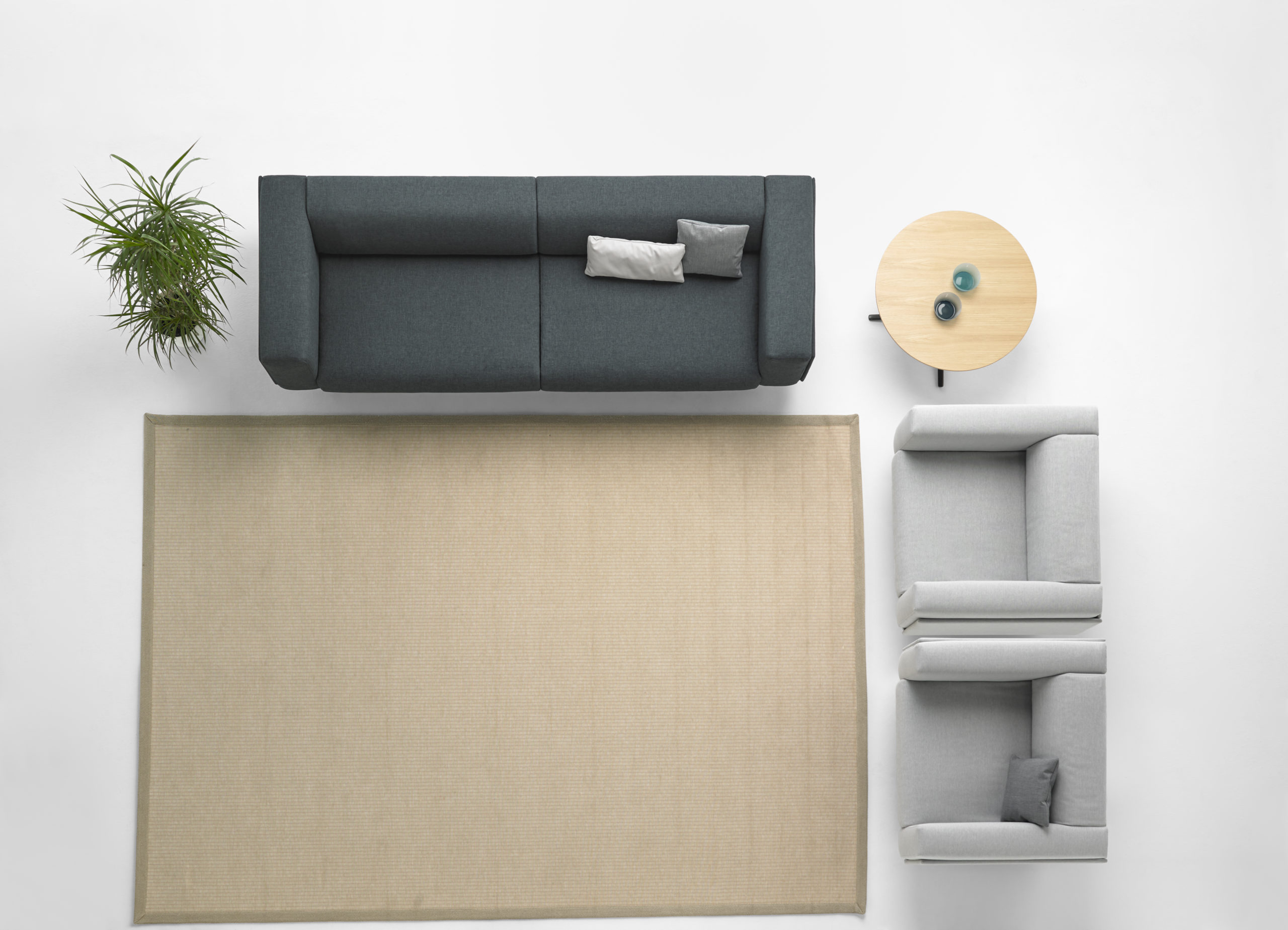 Les piétements peuvent être sont disponibles avec finition blanc ou noir. La collection est complétée avec des coussins de différentes tailles.