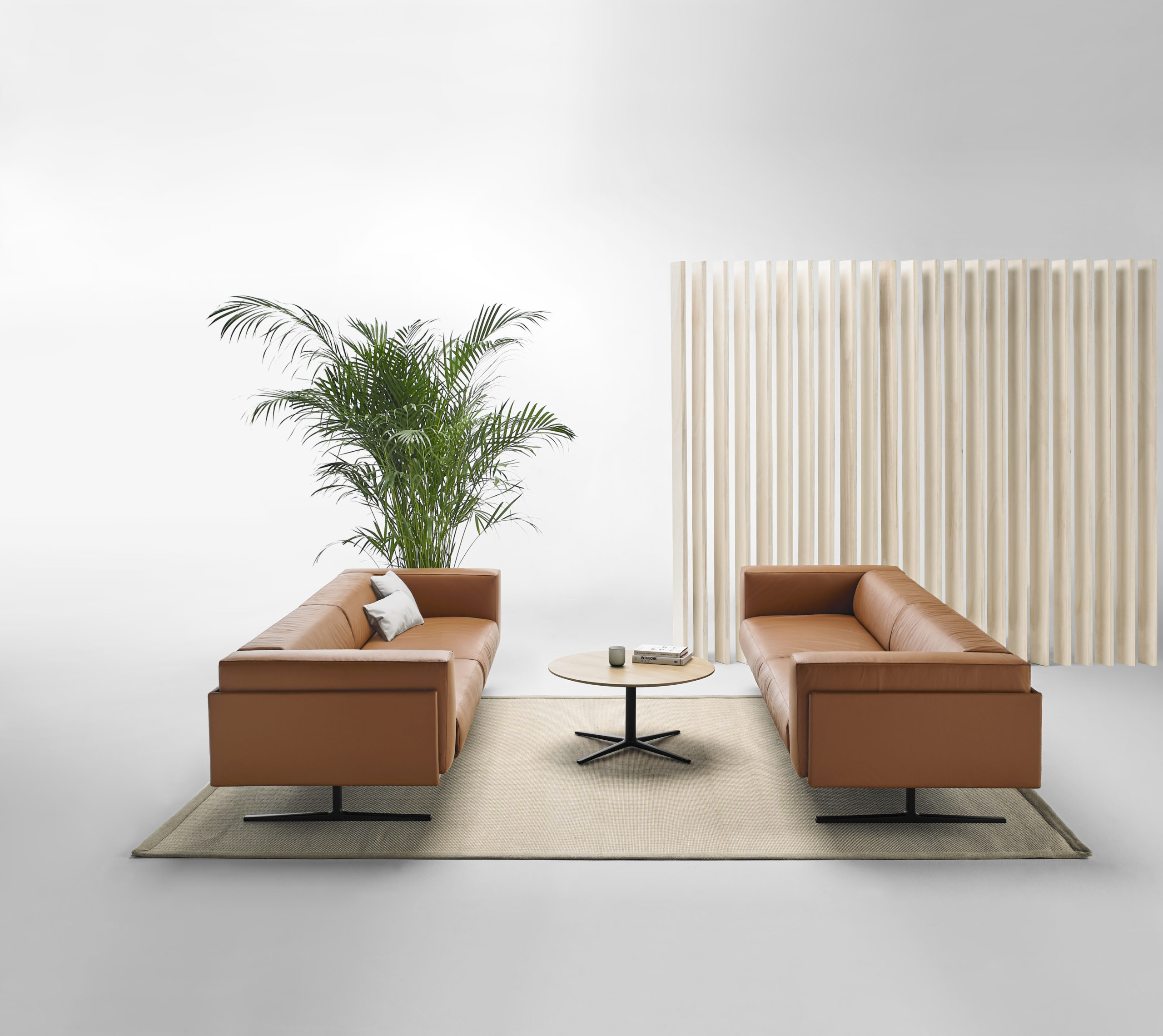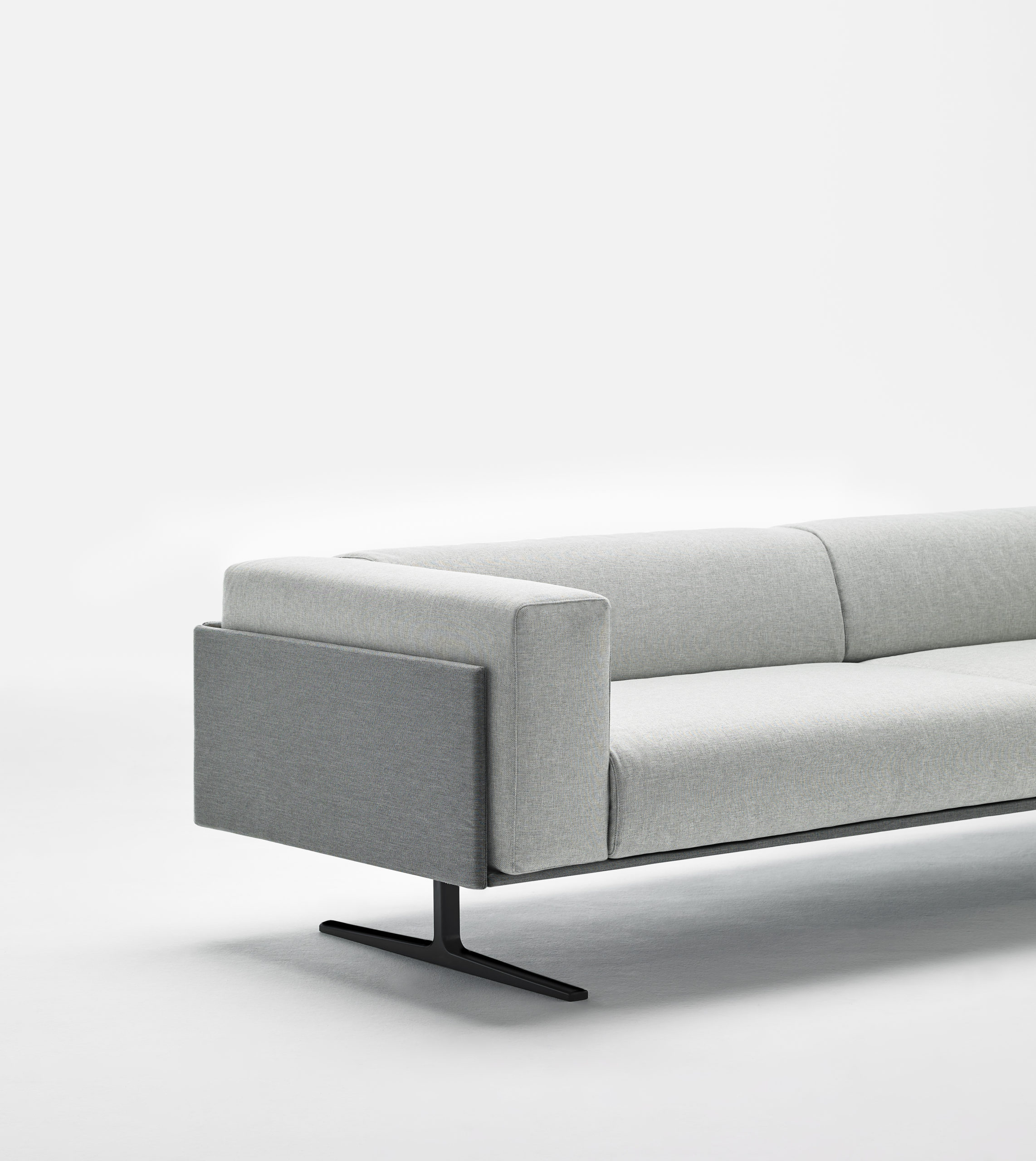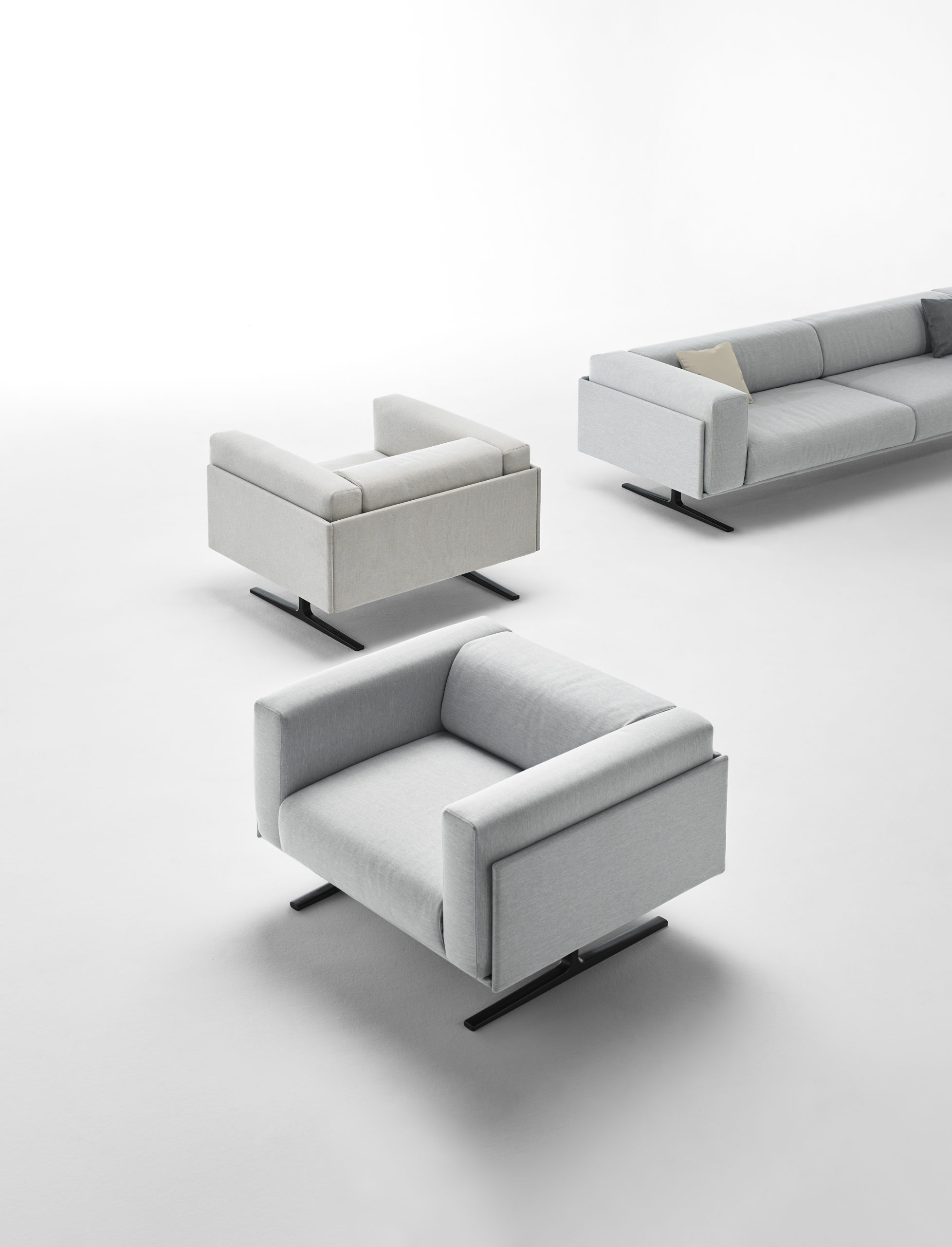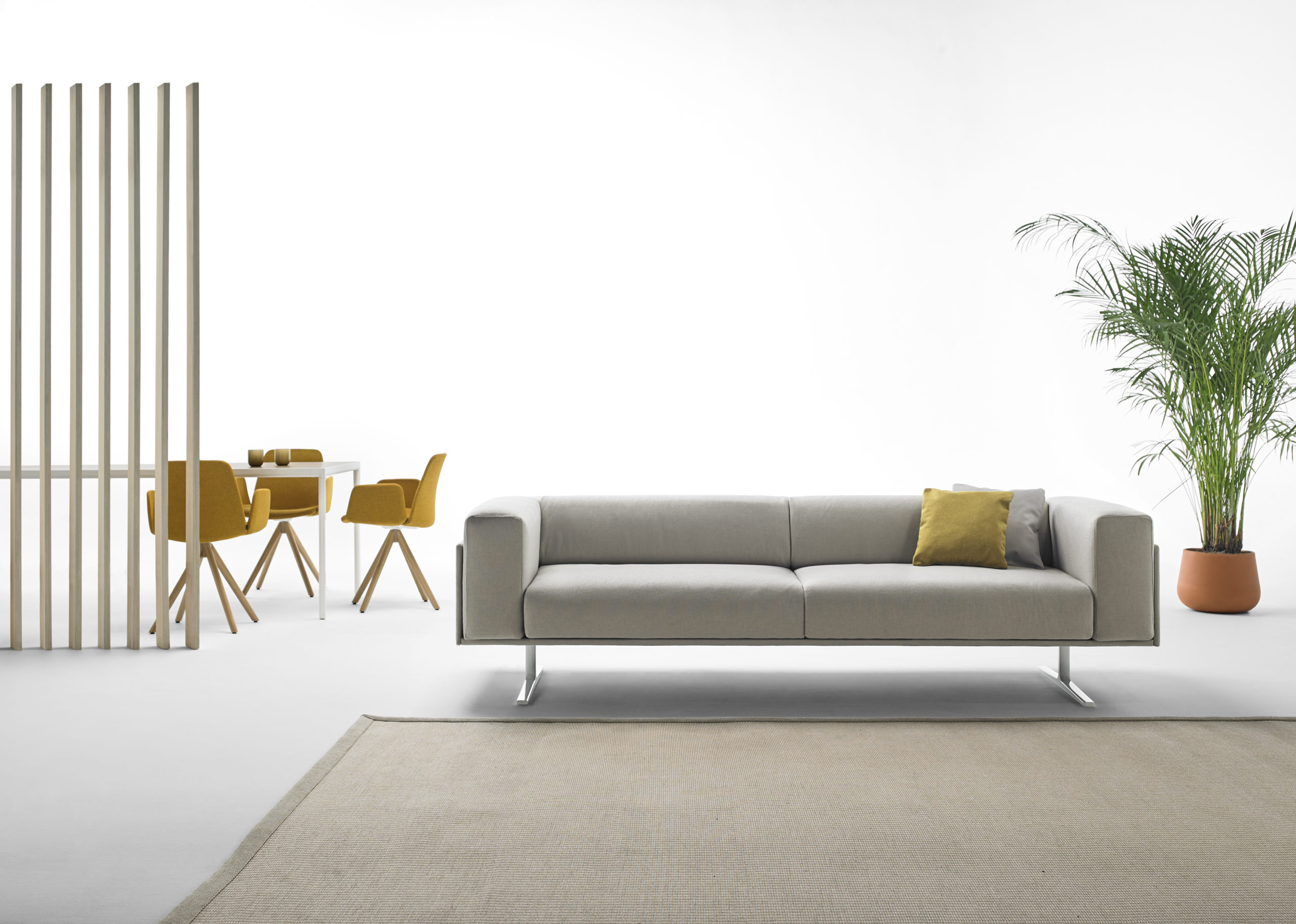 Les piétements peuvent être sont disponibles avec finition blanc ou noir. La collection est complétée avec des coussins de différentes tailles.