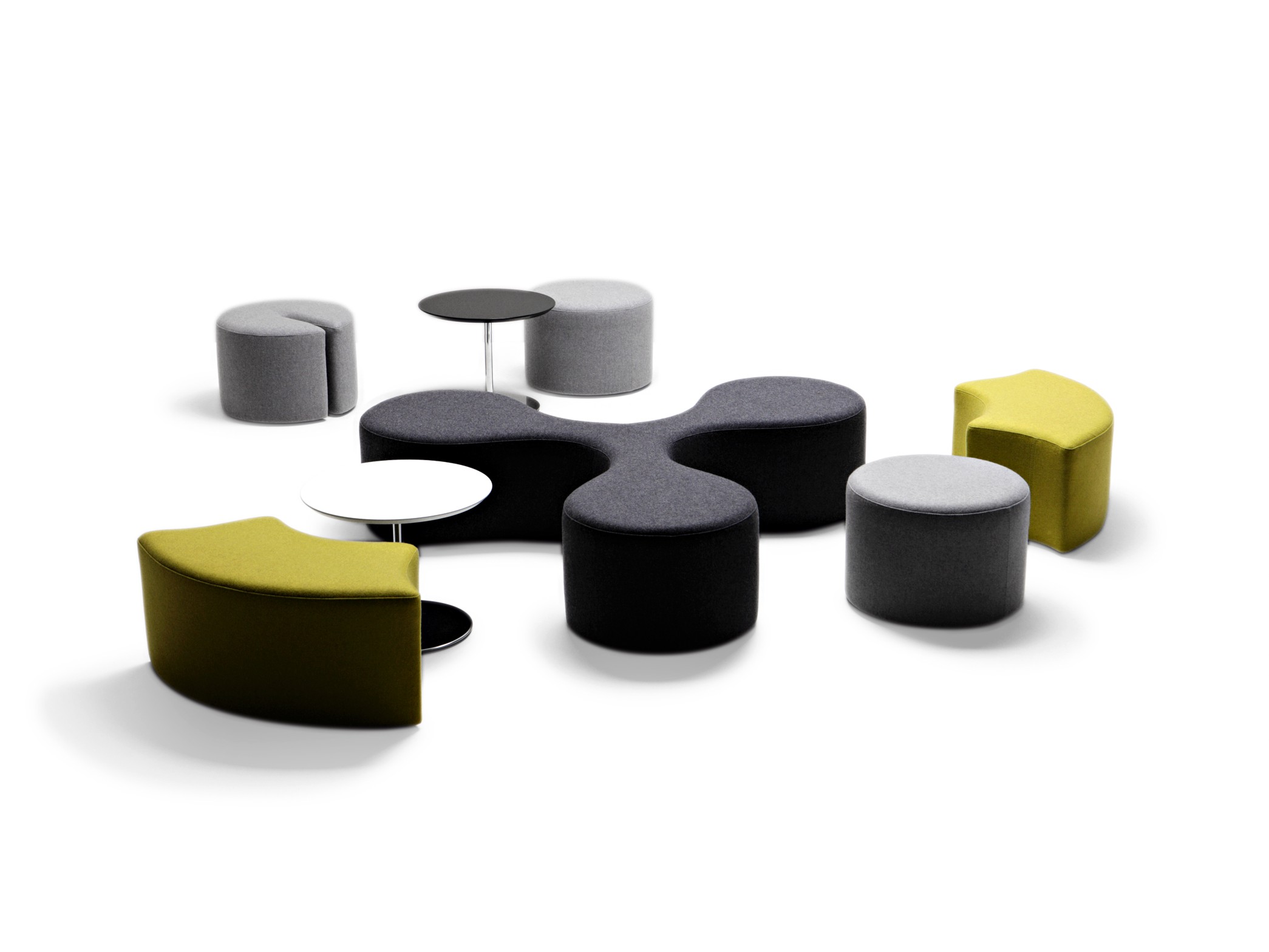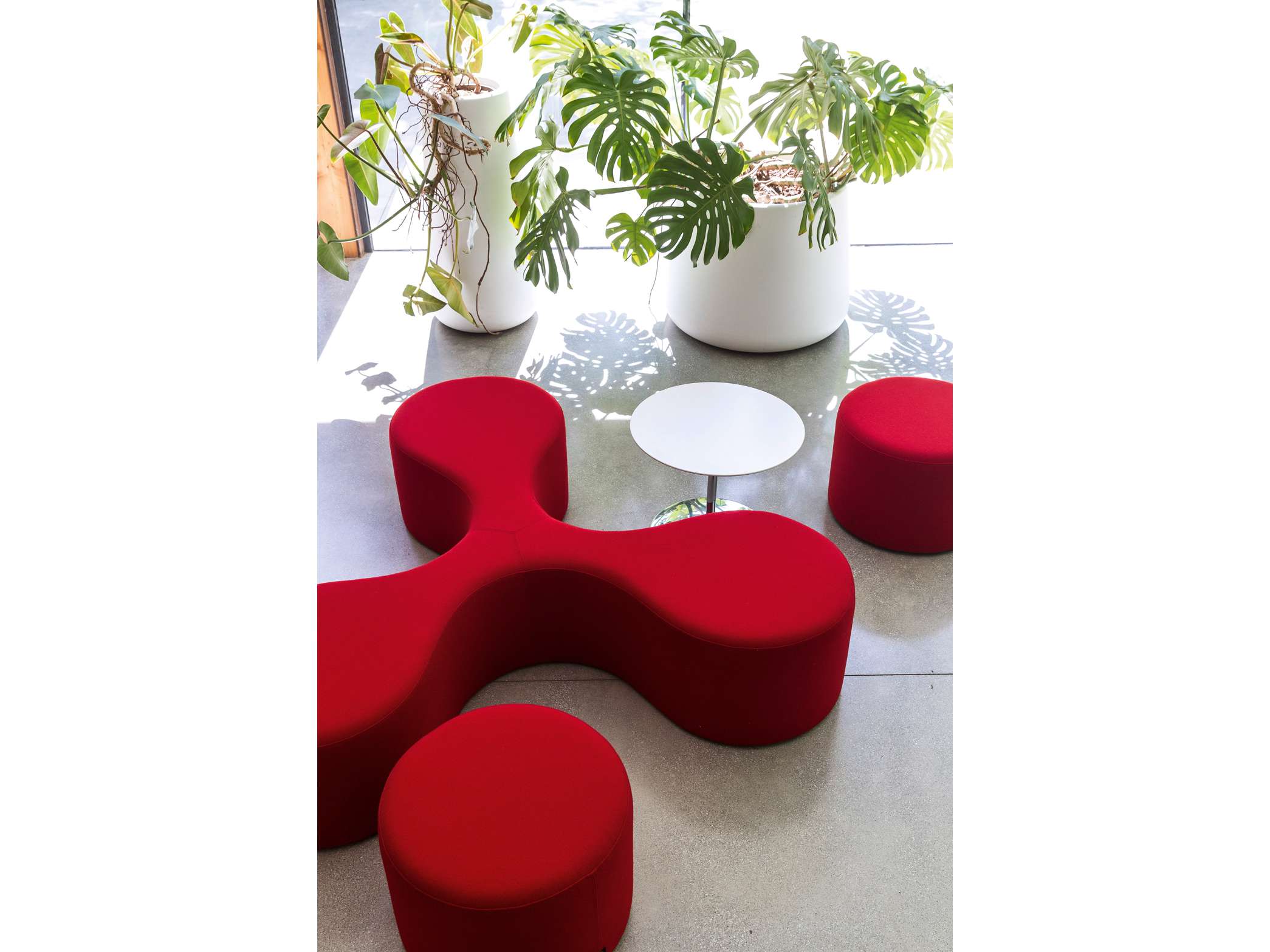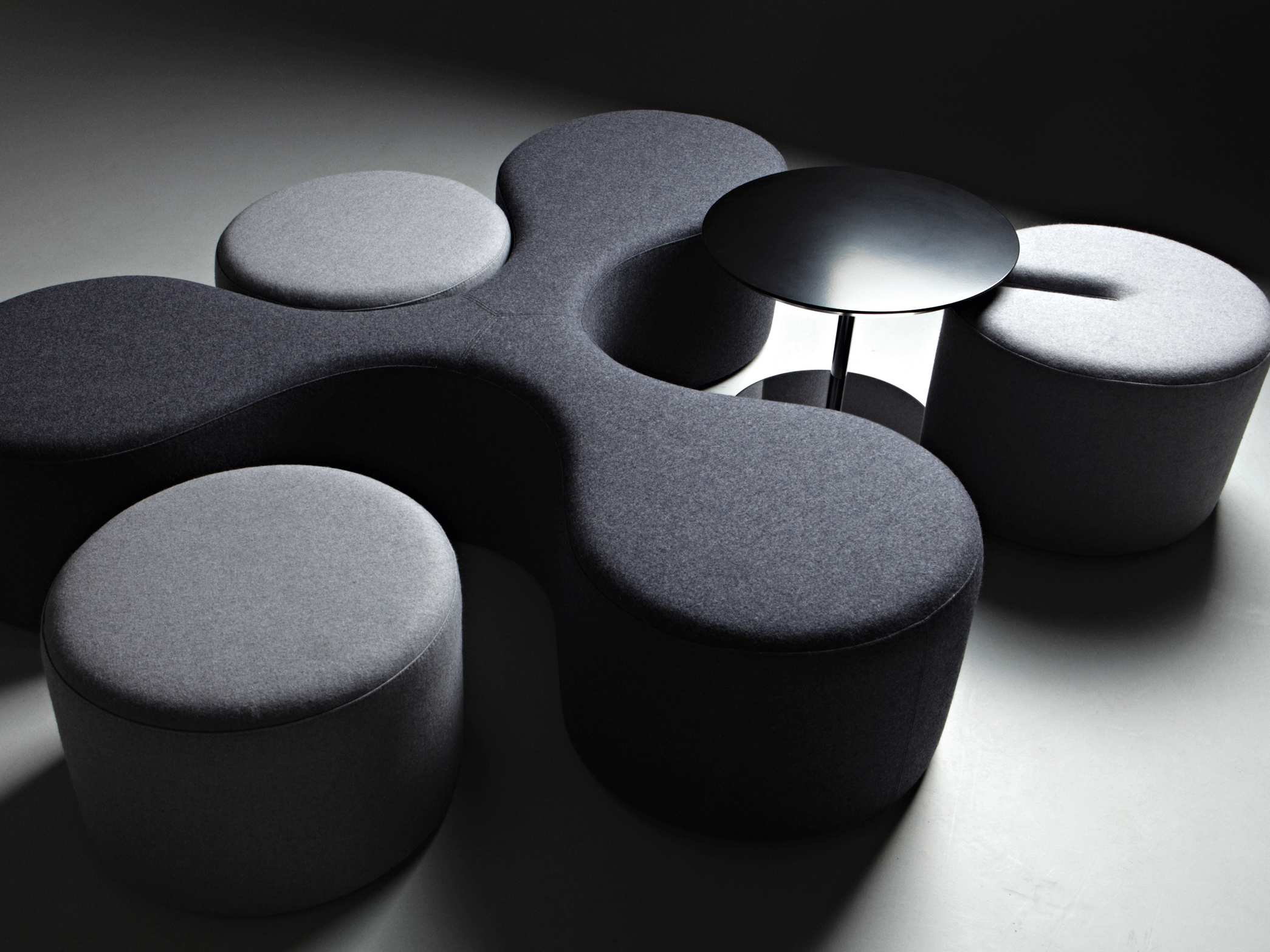 L’assise est l’atome central auquel se joignent poufs et tables basses rondes.