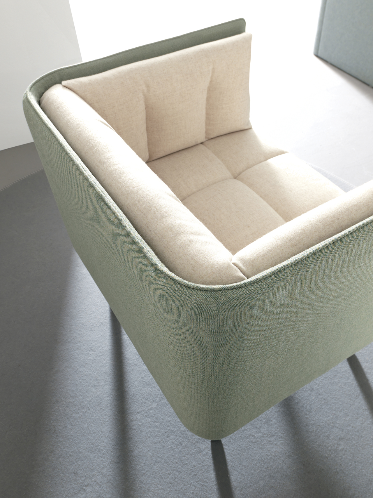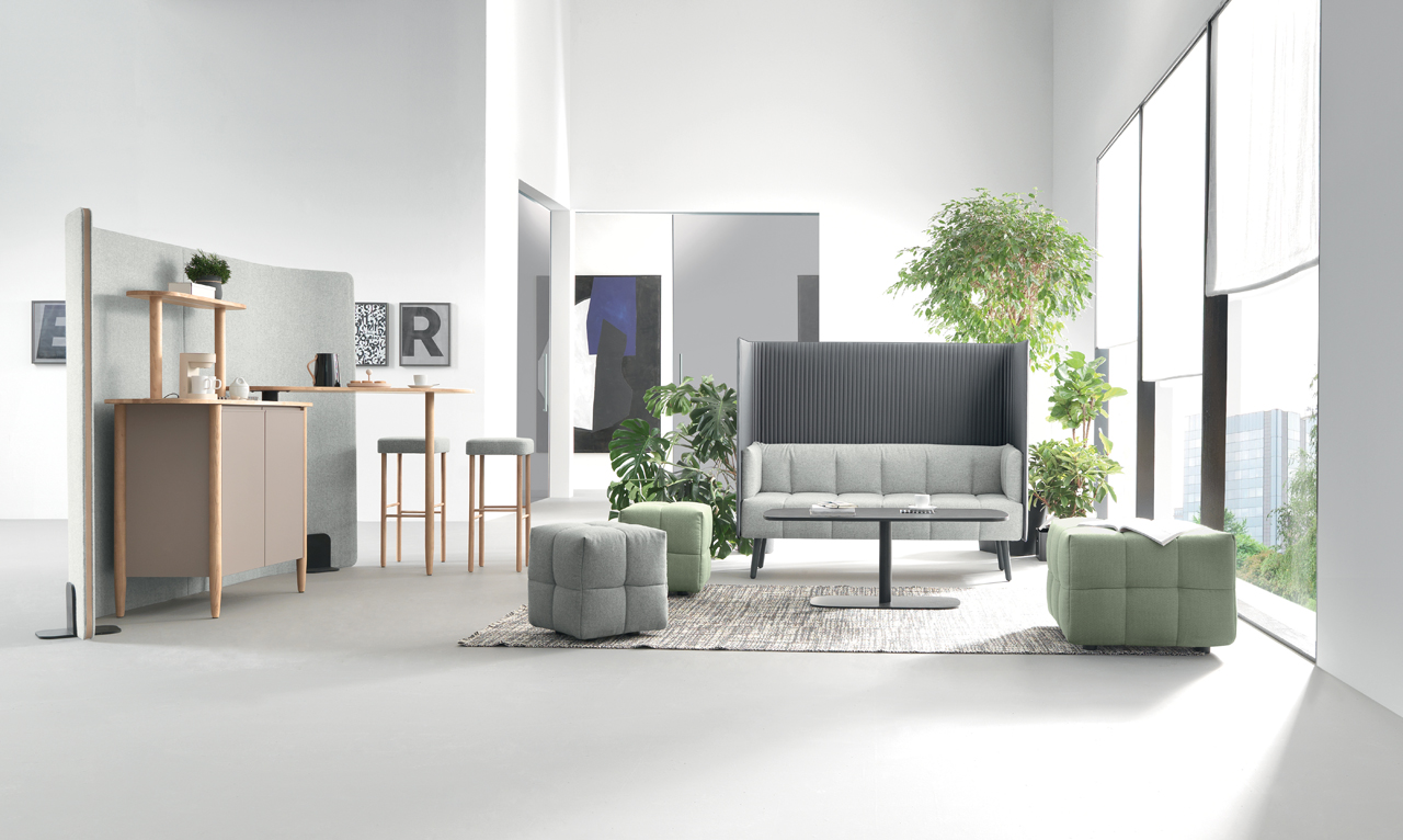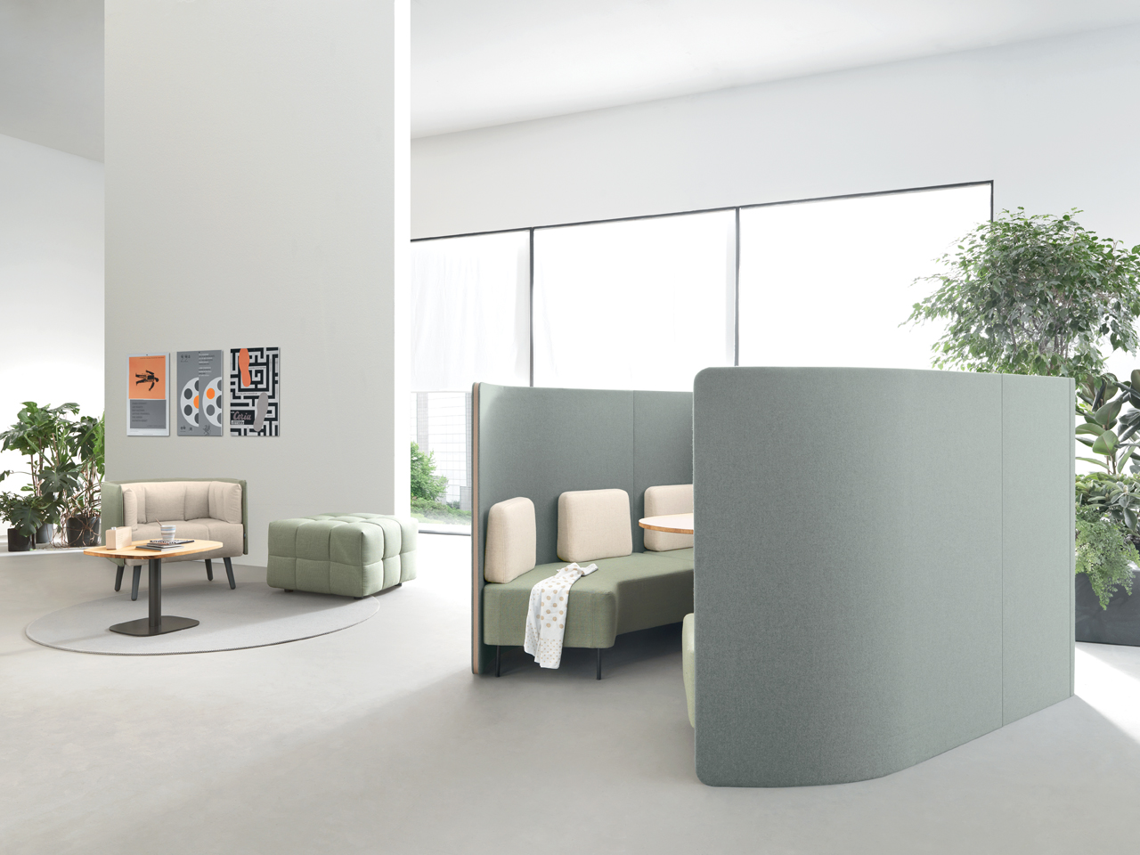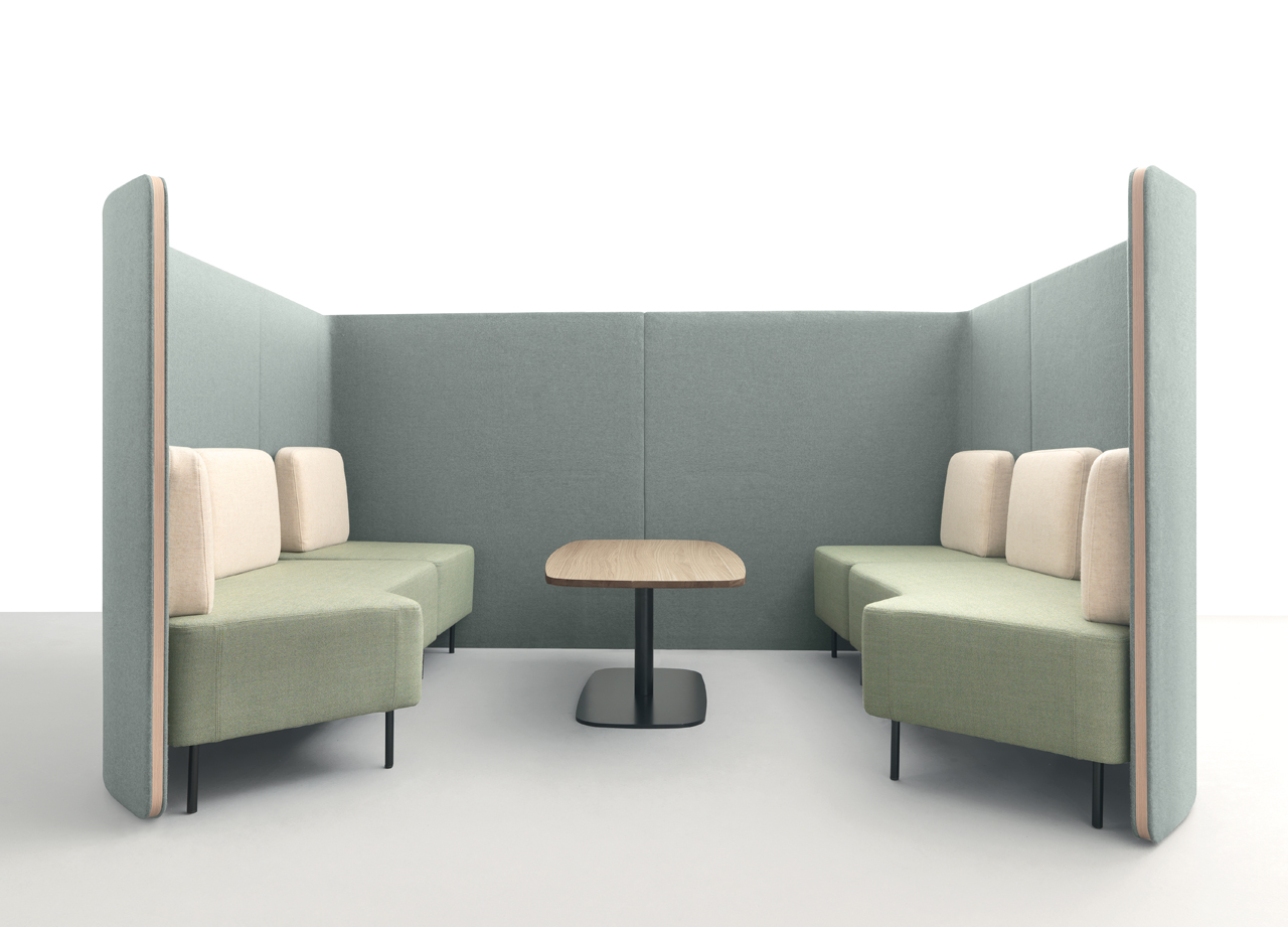 La collection Nucleo est parfaite avec les lignes douces d’Inattesa, maintenant proposée aussi dans la version avec dossier lisse. Les lignes courbes des panneaux Nucleo et d’Inattesa créent cette situation de confort et bien-être visuel indispensable dans les nouvelles typologies d’espace bureau.