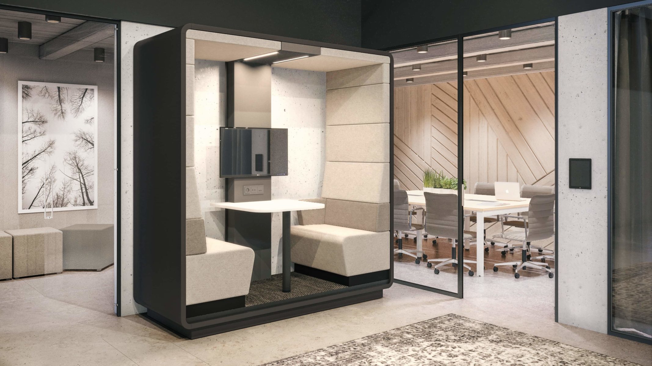 Les Cabines Acoustiques MIKOMAX sont des espaces supplémentaires et indépendants pour votre bureau afin d’y mener des réunions dans des conditions confortables. Les solutions acoustiques les plus récentes permettent d’isoler les sons efficacement. Et sa forme fermée assure l’intimité. Par conséquent, tous les participants des réunions organisées dans Les cabines MIKOMAX s’y sentiront bien et à l’aise. C’est une excellente alternative aux salles de projets et aux petites salles de conférence. Sans compter que vous pouvez le placer là où vous souhaitez !.