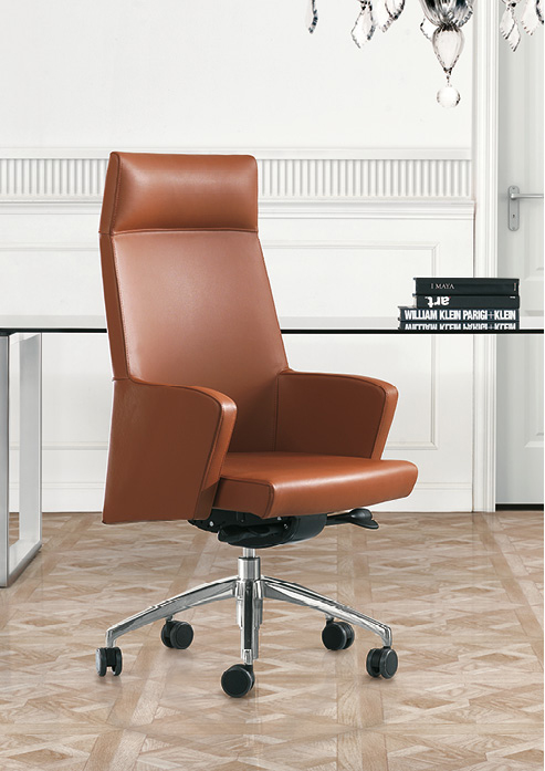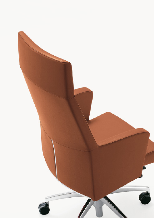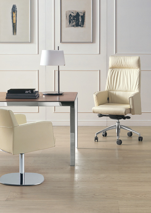 Série direction proposée avec têtière et dossier haut, pour chaise tournante pour visiteurs disponible avec dossier haut et moyen.