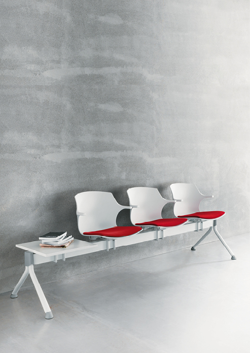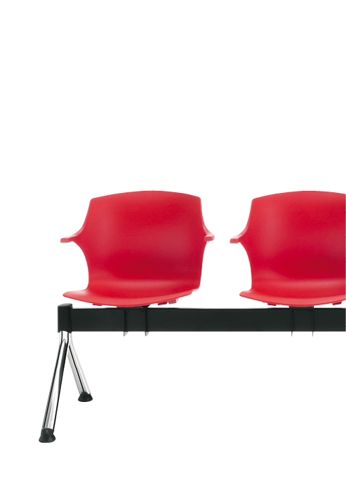Chaise multifonctionnelle avec coque en Polypropylène (100% vierge) proposée en 8 couleurs, dont deux (anthracite et blanc) sont disponibles en version ignifuge (CL1, M2). Les chaises xes disposent d’un carter sous l’assise pour en faciliter l’empilage. Disponible en version xe avec piétement à 4 pieds (chaise et tabouret) ou avec piétement traîneau, ainsi que tournantes avec piétement Spider, en croix et à 5 branches, ou encore sur poutre. Excepté la structure à 4 pieds, qui est en hêtre naturel, les structures xes ont une finition noire (N), chromée (CR) ou blanche (BI). Les tournantes ont le piétement en aluminium avec finition polie.